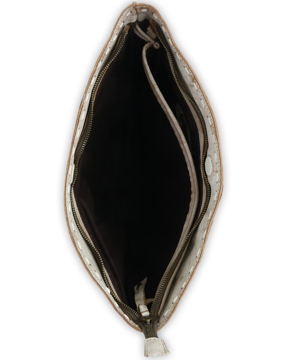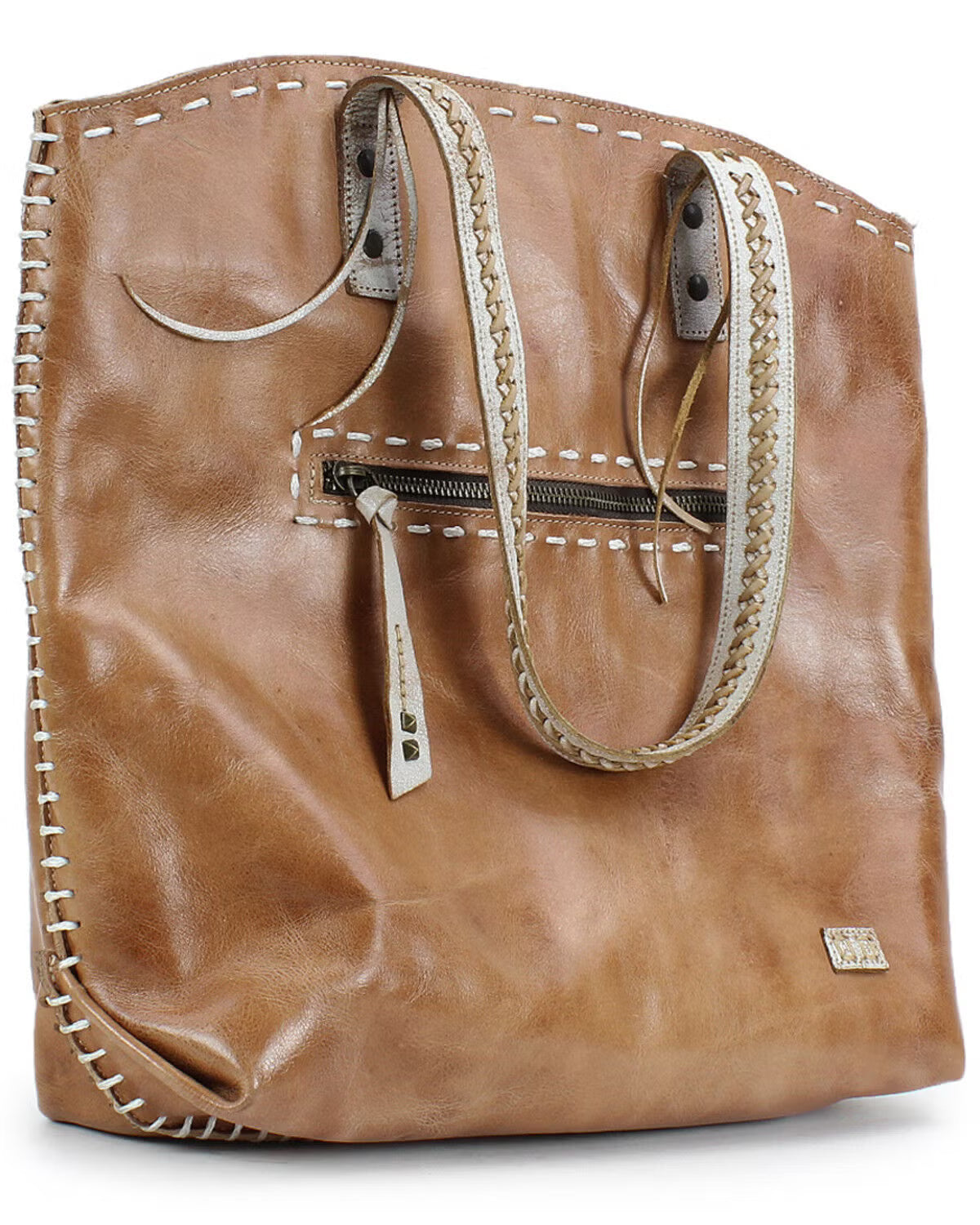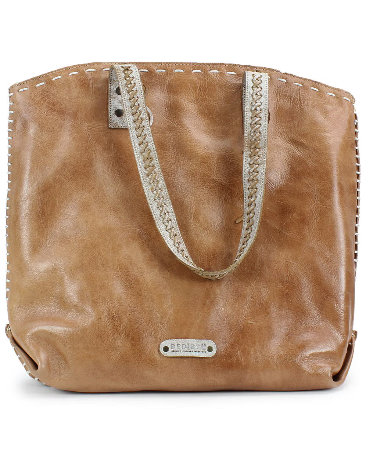 Barra II features decorative woven stitching detail around the edges and handles, adding a handcrafted touch to its classic silhouette. A front zippered pocket and interior compartments—including a center divider, one zip pocket, and two slip pockets—make organization effortless. Finished with organic cotton lining, metal stud accents, a secure zipper and magnetic snap closure, this tote is functional, timeless, and full of character.