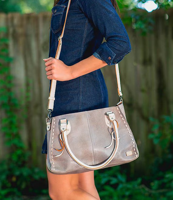 From Bed Stu, the Rockababy Leather Satchel Bag features: