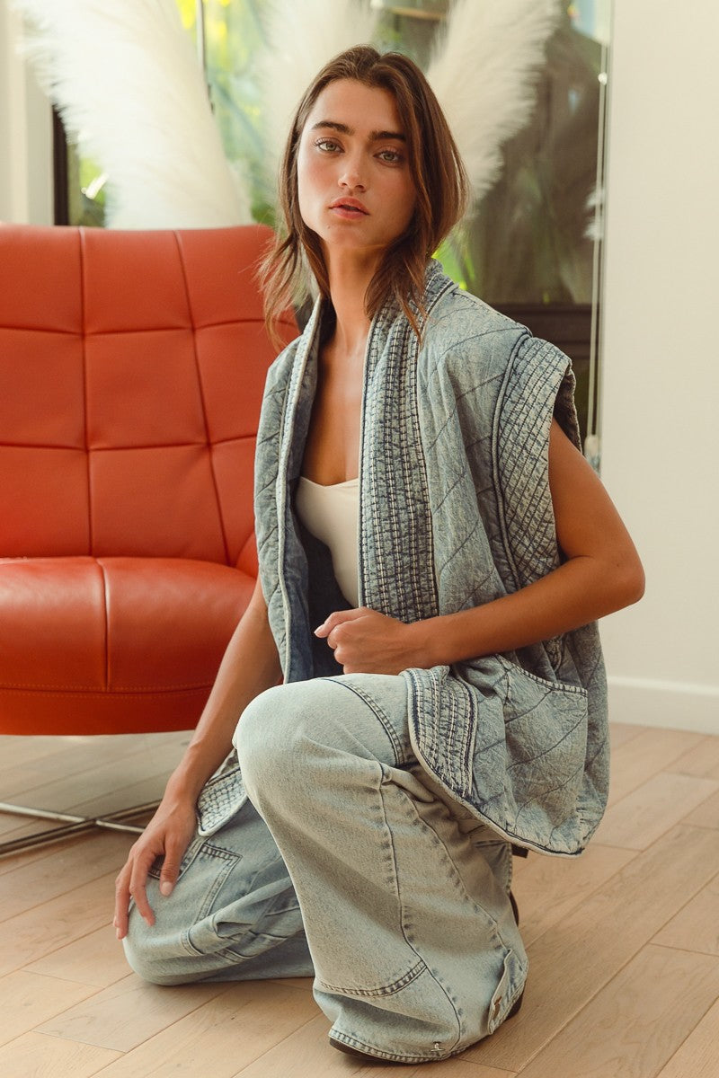 QUILTED WASHED CHAMBRAY VEST