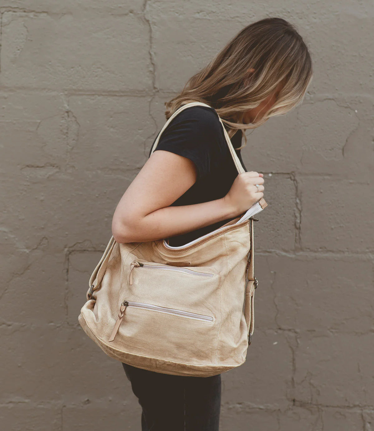 Introducing Oganness - the versatile bag that seamlessly adapts to your lifestyle. Transition effortlessly from a crossbody to a shoulder bag, and even a backpack. This classic tote is designed with numerous pockets and spacious interior compartments, perfect for keeping your essentials organized each day. Made from lightweight 100% cotton canvas with a washed leather finish, it not only offers a soft feel but also a distinctive distressed look. Let Oganness become your go-to travel companion and elevate your organizational game!