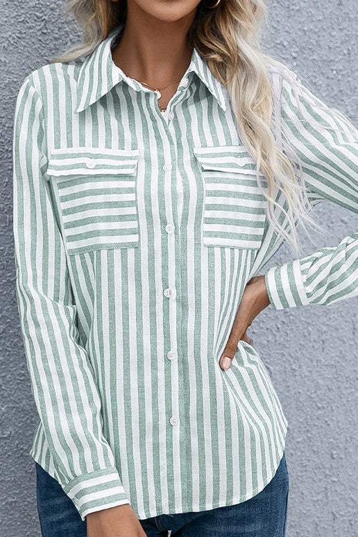 Elevate your casual - chic wardrobe with this Women's Striped Shirt. Crafted from breathable fabric, it features a classic button - down front, chest pockets for a touch of utility, and roll - up sleeves for versatile styling. The timeless stripe pattern ensures easy pairing with denim, shorts, or skirts. Whether for a laid - back day out or a relaxed office look, this shirt offers comfort and style in one.